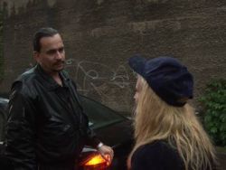 Auf der Terrasse lässt der Cowboy die Nutte Schwanz fressen und hökert sie
