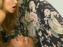 Eine versaute Blondine wird in die feuchte Muschi genagelt