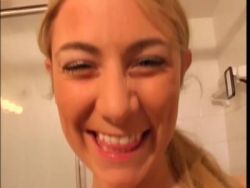 Sexy Blondine mit kleinen Hupen bekommt eine Spermaladung