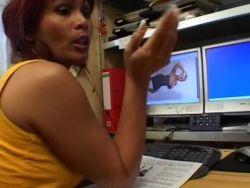 Haarfreie Fotze von Dessous Flittchen wird im Kanzleiraum gerammelt