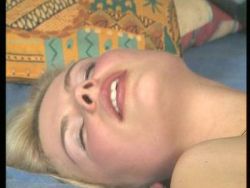 Die Blondine streichelt sich ihre kleineren Brüste