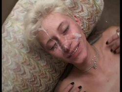 Fette Ladung Herrensahne landet auf Fresse einer betagten Hure