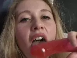 Ein heißes junges Teen befriedigt sich mit einem Dildo