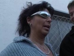 Ältere Hure mit monströsen Brüsten wird gerammelt