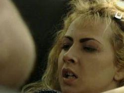Blondes Luder mit drallen+ Titten bekommt eine Wichsfontäne