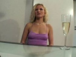 Blondes Mädel mit kleinen Hupen fingert sich das Muschiloch