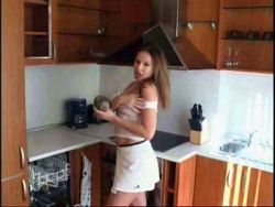 Mal eben schnell legt die sexgeile Tussi in der Küche einen Solofick hin