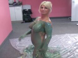 Die kreative Schlampe bearbeitet sich hemmungslos ihre dicken Titten