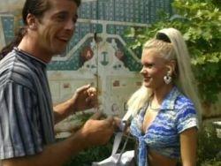 Dünne Schlampe mit großen Milchtüten wird genagelt