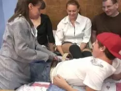 Pralle Glieder werden von Amateur Nutten beim Gruppensex geblasen