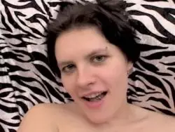 Die Tussi massiert sich ihre rasierte Muschi im Bett