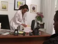 Bildhübsche verdorbene Krankenschwester lutscht einen Schwanz