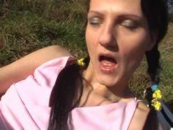 Blutjunge hübsche Nutte fingert ihre getrimmte Fotze