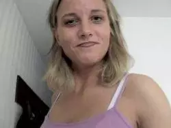 Blondgefärbte Lady reibt sich ihre glatte Spalte