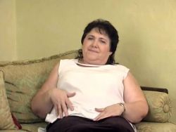 Dicke unrasierte Frau fingert sich und nagelt sich mit dem Dildo