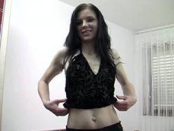 Im Bad bespielt sich diese dünne Teenie Hure ihre flachen Möpse